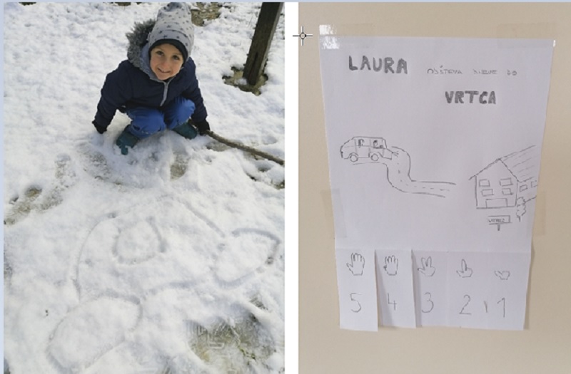 Otroci so na domove prejeli mapice s pobarvankami, materialom na temo Pasavčka. Starši so bili v veliko pomoč, hkrati pa tudi veseli, da so otroci dobili dodatno delo, ki je bilo zelo pomembno, saj ga je poslala vzgojiteljica. Ko so zaplesale snežinke v januarju, pa so na snegu oblikovali avto.