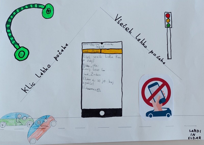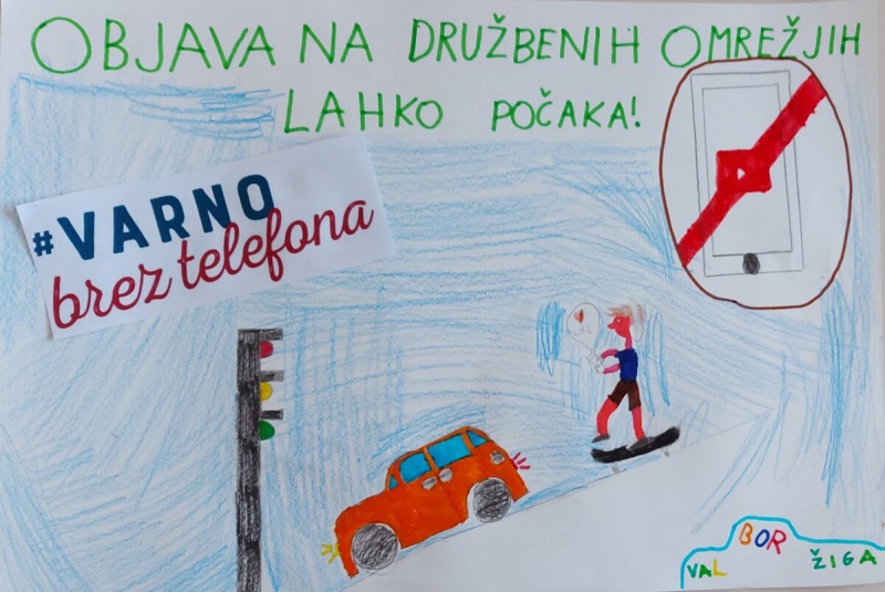 (Kamnik, 19. januar 2022) Na Osnovni šoli Marije Vere Kamnik so se učenci in učitelji pridružili ozaveščanju o nevarnostih rabe mobilnega telefona in drugih naprav med vožnjo in nasploh udeležbo v prometu. Nastali so zanimivi izdelki učencev 5. razreda. Prizadevanja za ozaveščanje osnovnošolcev o tveganjih uporabe mobilnega telefona v prometu so ključna, saj gre za generacijo, ki s telefoni in drugimi napravami odrašča. Zato je njihovo zavedanje, da se tveganje za prometno nesrečo močno poveča, če med udeležbo v prometu gledajo v telefon, ključno.