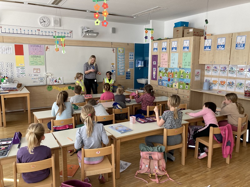 Za učence 1., 2. in 3. razreda je AVP izvedla delavnice o pešcih in kolesarjih. Poudarek vseh treh delavnic je bil na večji vidnosti in varnosti pešcev v prometu in ustreznem ravnanju v prometu. Učenci so reševali tudi delovni list iz učnega gradiva Učenec pešec ter razmišljali o pomembnosti zaščitne čelade ob poskusu z jajcem v demočeladici.