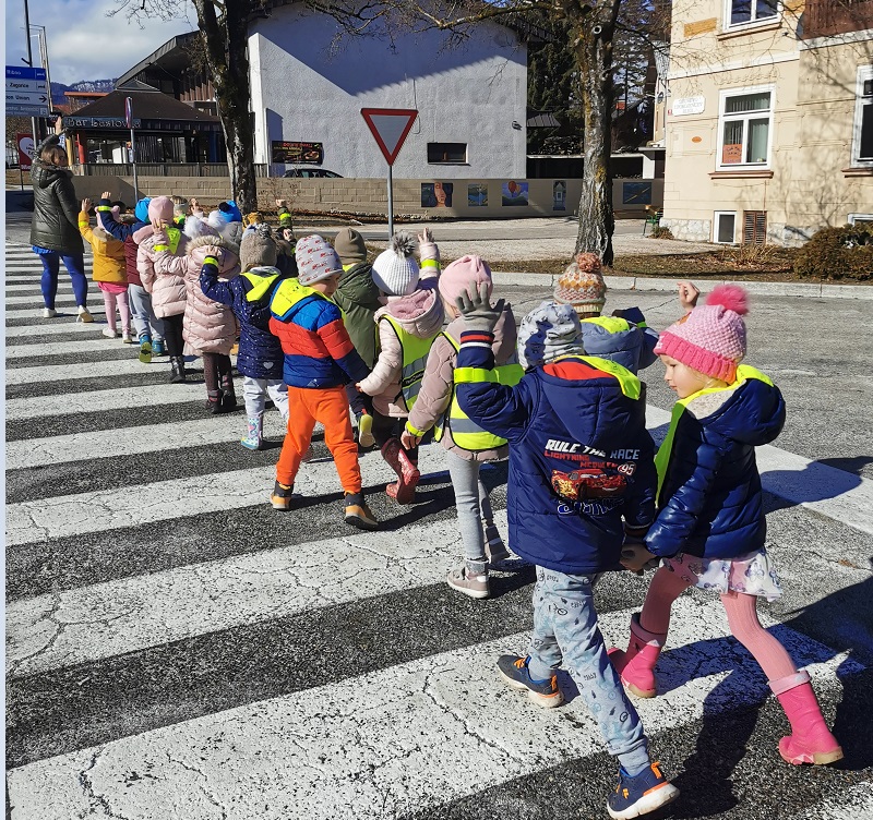 V nadaljevanju so si nadeli odsevne predmete in se podali na sprehod, na katerem so spoznavali pravilno ravnanje v cestnem prometu.