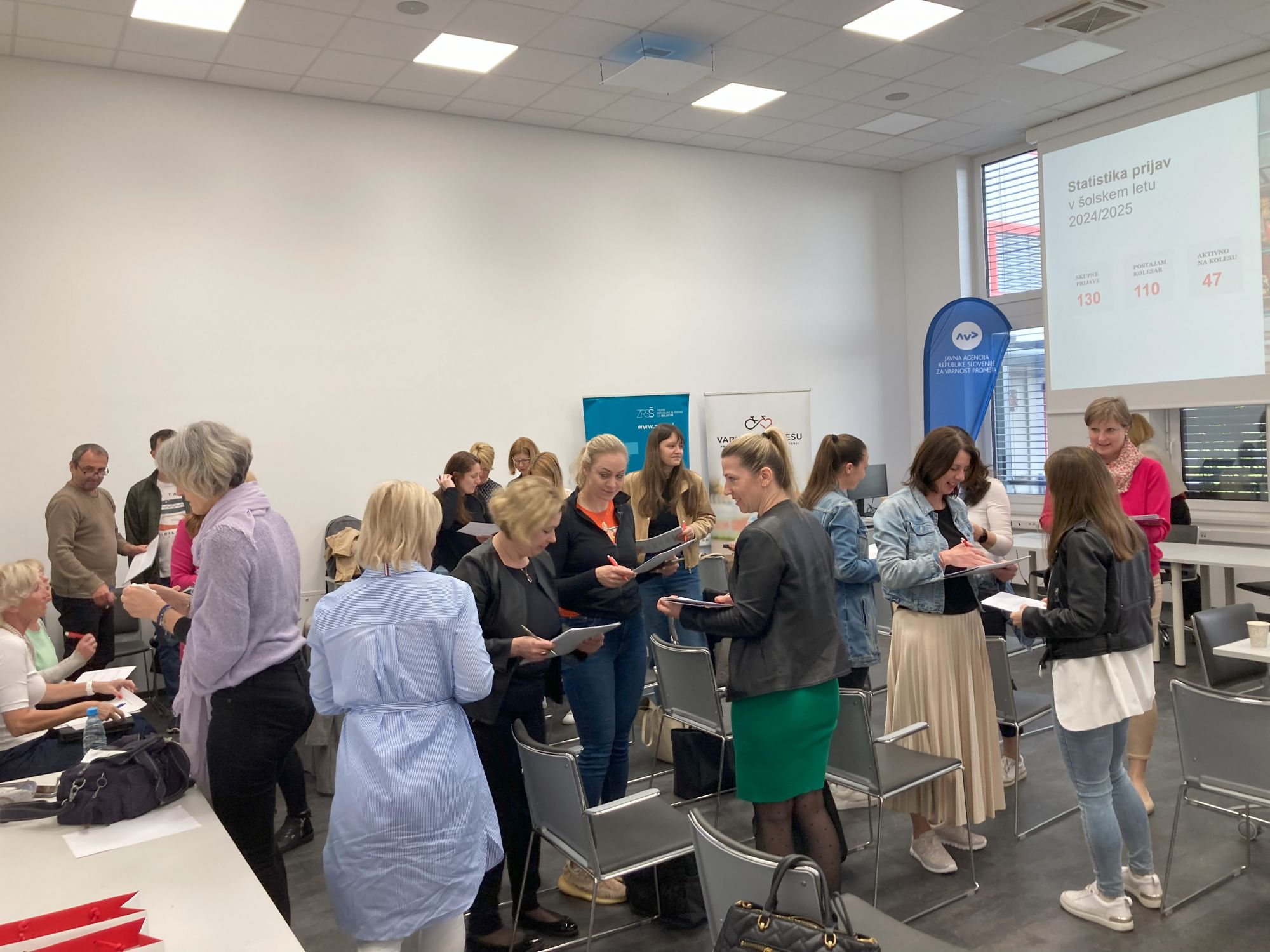 Včeraj (24.4.2025) je potekalo usposabljanje učiteljev Varno na kolesu na izpitnem centru Agencije RS za varnost prometa v Ljubljani. Po uvodnem pozdravu Tanje Medved Voglar in Maje Zužič (Butan Plin) se je v sproščenem in prijetnem vzdušju usposabljanje nadaljevalo na temo implementacije dokumenta Strategija za trajnostno mobilnost in izobraževanje za trajnostni razvoj otrok in mladostnikov v VIZ do leta 2027 in usposabljanje za vožnjo kolesa in kolesarki izpit (mag. Marta Novak in Mojca Dolinar, ZRSŠ). Spodbujanje varne mobilnosti otrok in demo naprave AVP je predstavila dr. Irena Janžekovič Žmauc (AVP). Udeleženci so imeli tudi možnost preizkusiti težo glave kolesarja in tehtnice naletne teže. O varnosti kolesarjev je udeležence informiral Matjaž Leskovar (Policija), o odškodninski odgovornosti šole Maša Vrabič (Zavarovalnica Triglav), o prometni preventivi Dejan Letnar iz AMZS. Preko videokonference se nam je pridružilo tudi veliko šol, ki so letos sodelovale v projektu. Učenci so reševali poučni in zabavni kviz o varnosti kolesarjev, ki ga je pripravila Maja Zužič (Butan Plin, d.d.) ter se veselili razglašenih zmagovalcev iz sklopa Postajam kolesar.
