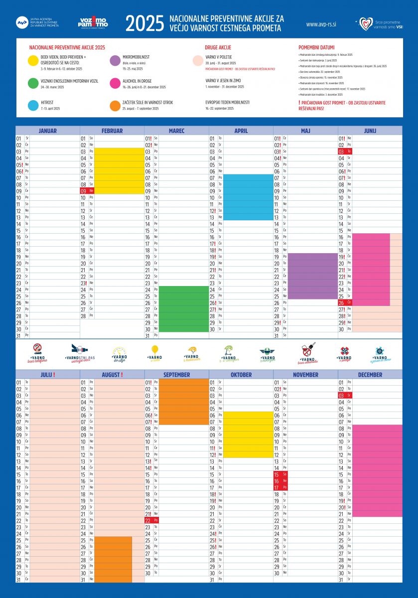 Agencija za varnost prometa je pripravila koledar nacionalnih preventivnih akcij za leto 2025.